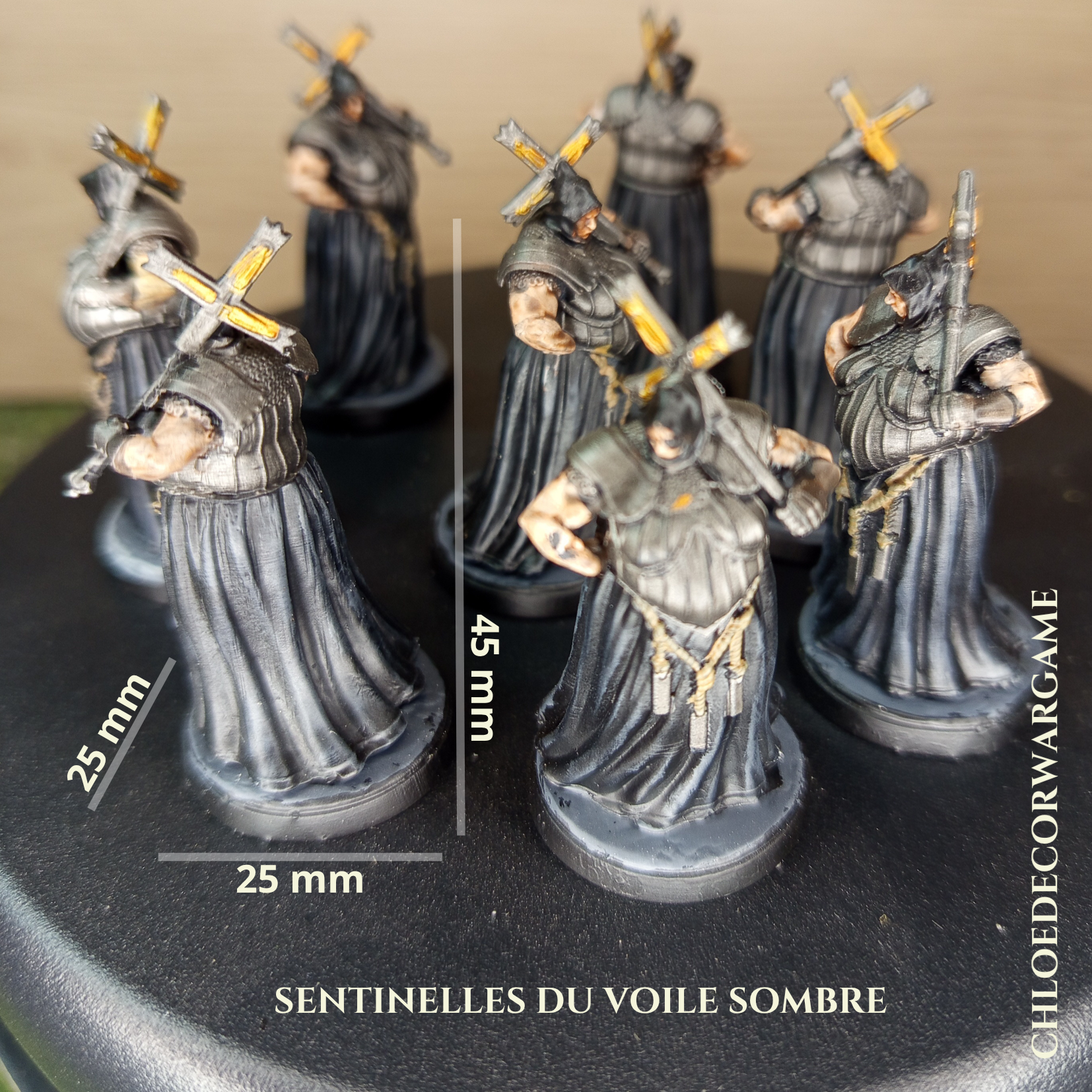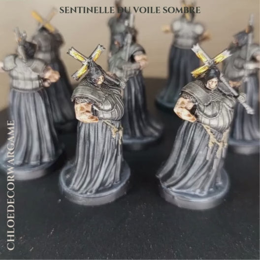 Dans les ruines oubliées et les forêts interdites, les Sentinelles du Voile Sombre veillent, immobiles, sur d’anciens mystères. Armées de grandes épées marquées d’une croix dorée et drapées de tuniques lourdes, elles incarnent la solennité et le mystère des mondes obscurs. Figurines idéales pour vos tables de jeu, campagnes narratives ou vitrines à l’atmosphère sombre et envoûtante.